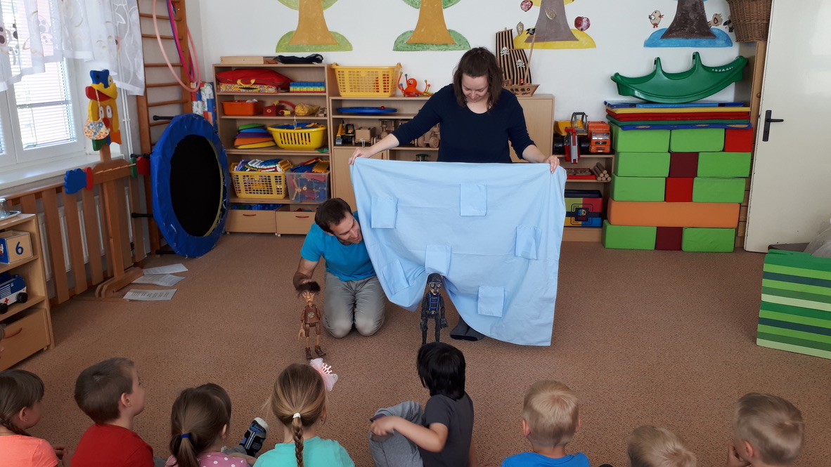 - Spoluvytváření příběhu spolu s loutkoherci: děti na jednání Smolařínka reagují a radí mu;